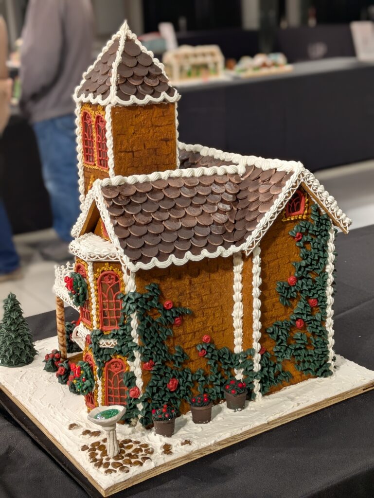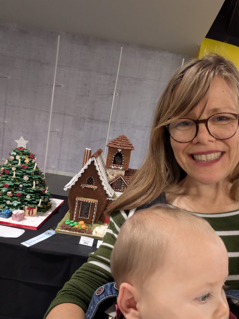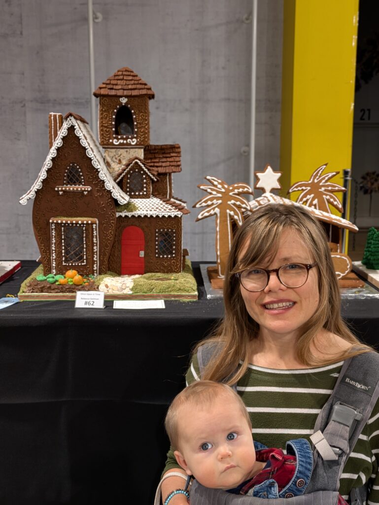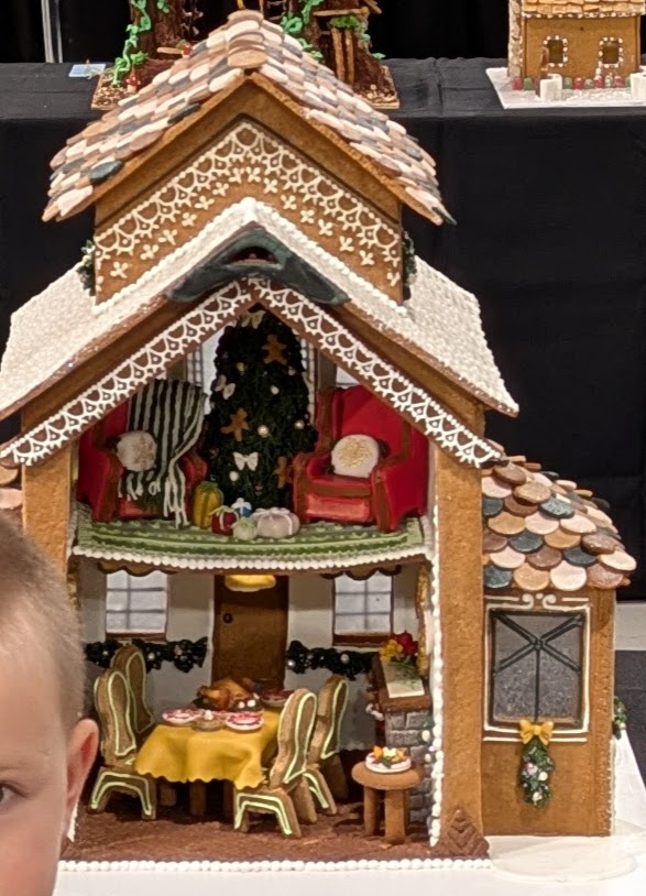 I was getting giddy thinking about going to see gingerbread houses. Way back when we had three children, we had taken them to see the creche and gingerbread displays in charming winter town collections. The nostalgia was killing me. I had worn my quaint Christmas fleece I had even sewn with pom poms going up the zipper, wearing red lip stick, my hair in a timeless up due with braids, and feeling pretty and accomplished by dressing my little ones warm and doing something so Christmasy and fun.