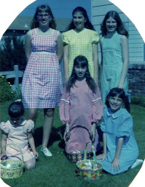 I love this picture of my grandmother. In the first photo, I learned from my aunts that she had gathered travel clothes to make a home visit. In the second, she and my sensational aunt Vivian on the far left, sewed matching Easter dresses, in cahoots. Another thing that she just loved to do was match and coordinate daughters. From some genealogy research my aunts shared with me, I learned that her mother Wilhemina was also all about reciting charming little poems, songs and stories to create childhood magic and delight. All those things I love about me, are really bits and pieces of cherished dna, whispers from angels to bid you here and there, and traditions carried and passed down of gathering children to quaint experiences.
